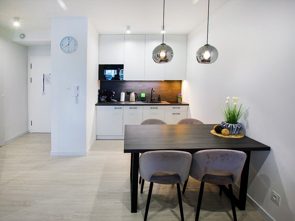 Das 40 m² große Apartment mit einem + 12 m² großzügigen Balkon bietet modernen Wohnkomfort und ist ideal für einen entspannten Aufenthalt. Die Unterkunft ist stilvoll und hochwertig eingerichtet und verfügt über moderne Elektrogeräte und schnellem WLAN, die den Alltag erleichtern.